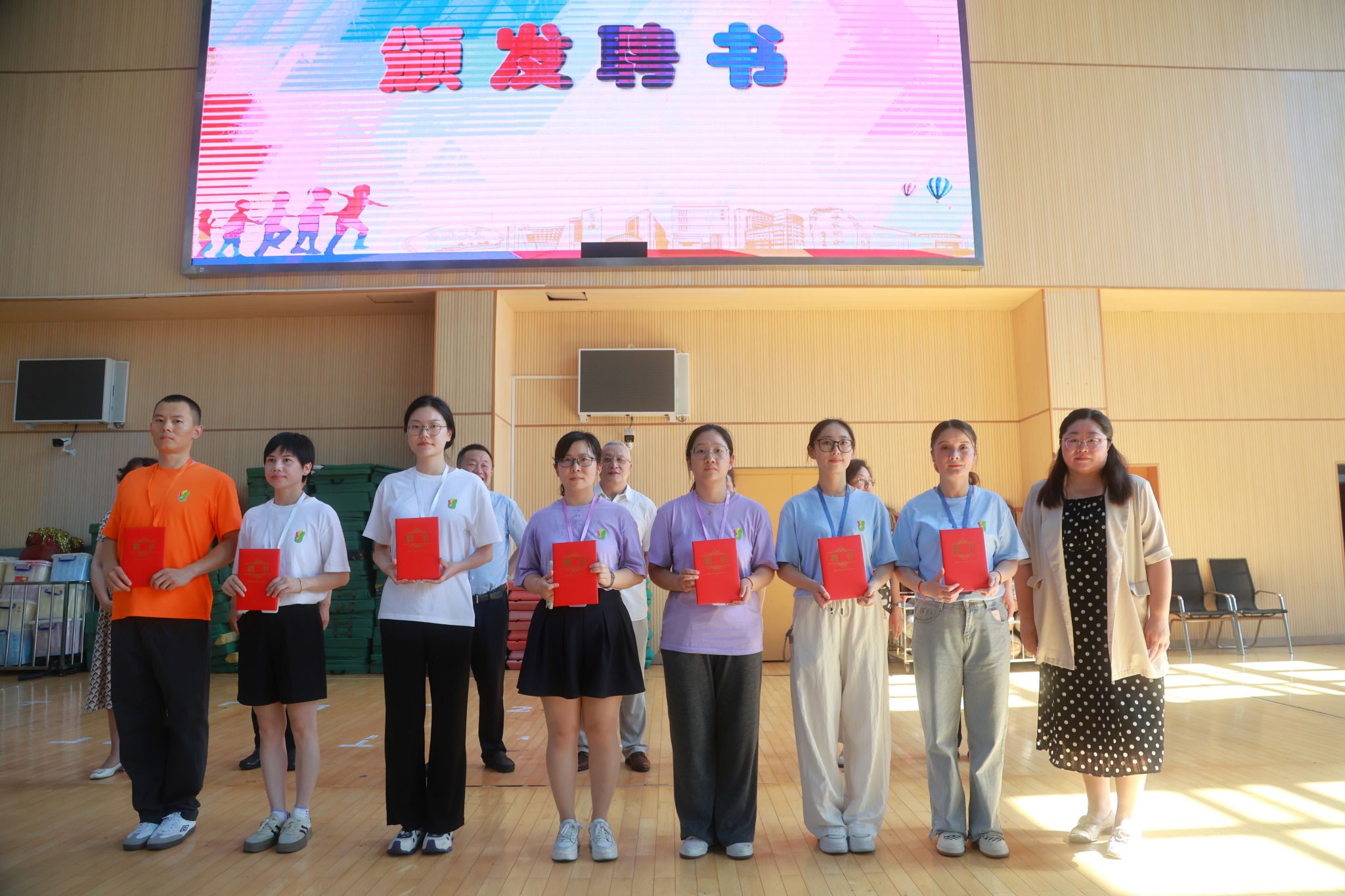 程建华、刘正群、顾莹、周丽昀四位嘉宾分别为人工智能·上善营、科学探索·海纳营、史学科技·大道营、艺术美育·学济营的代表授旗。飘扬的营旗象征着孩子们的成长之旅正式启程。